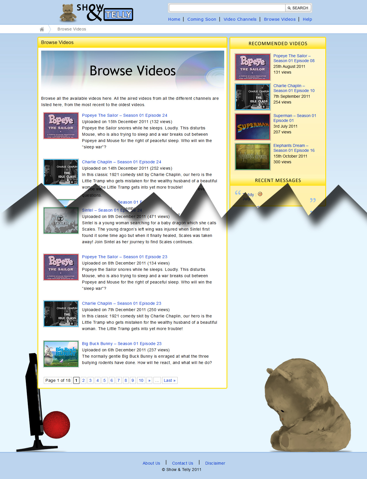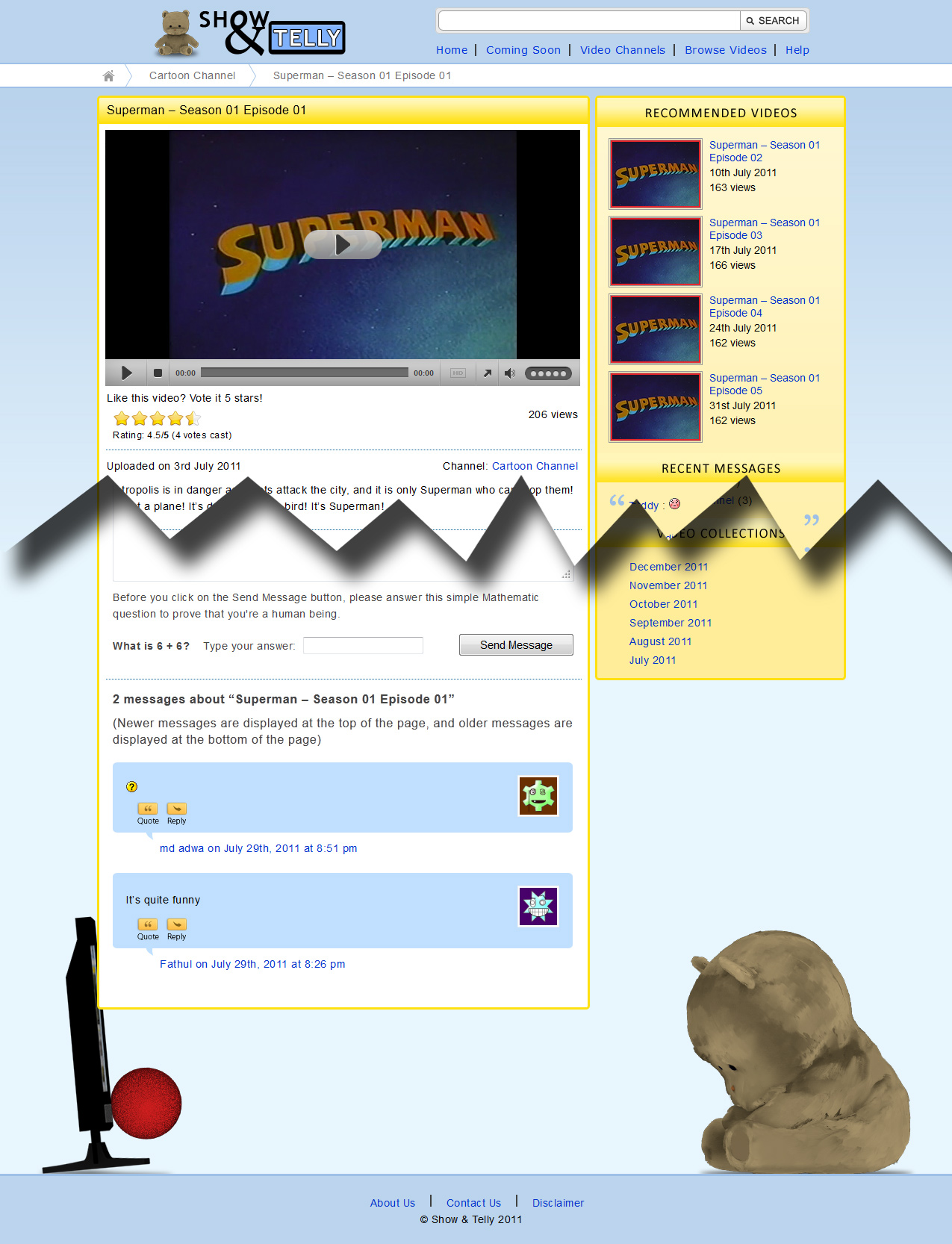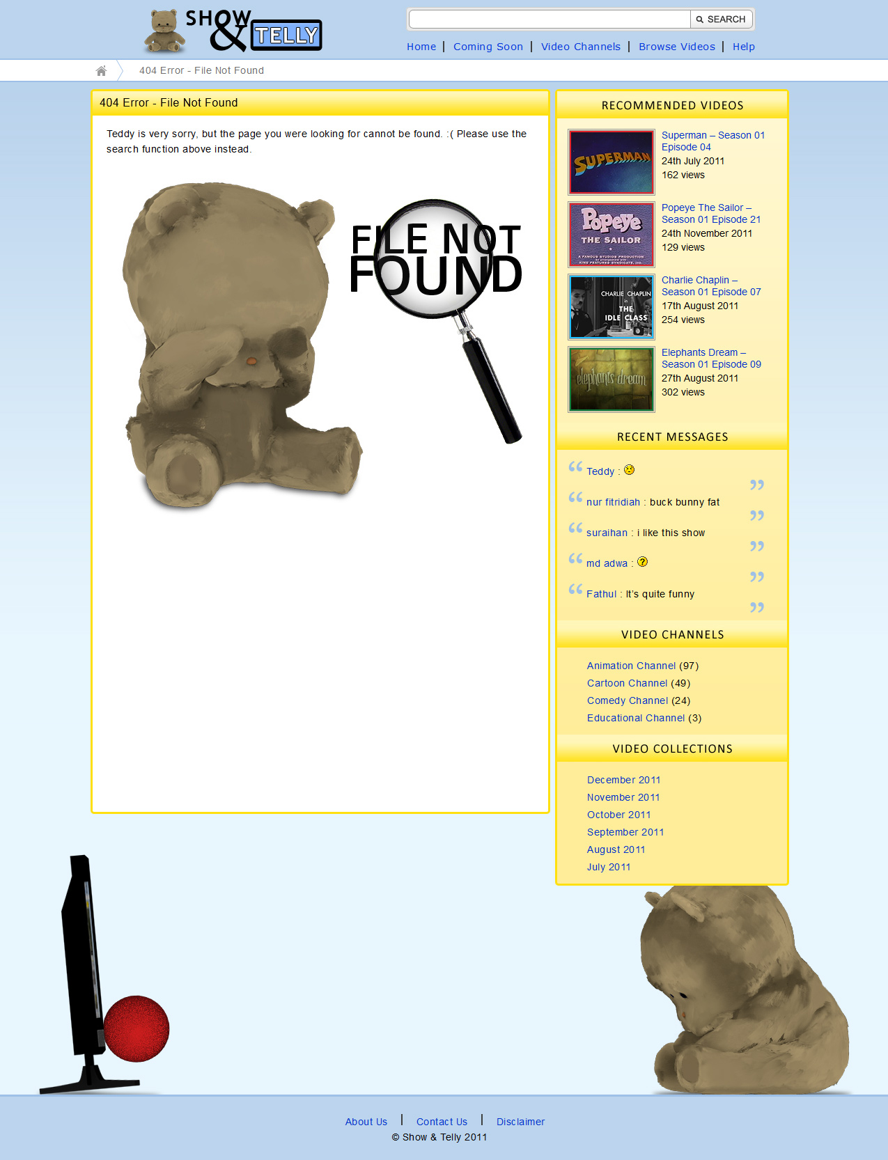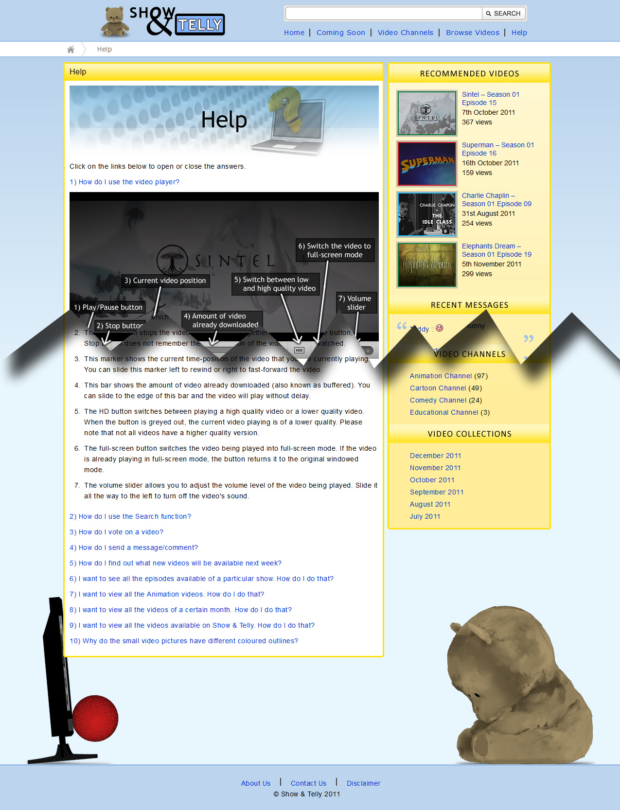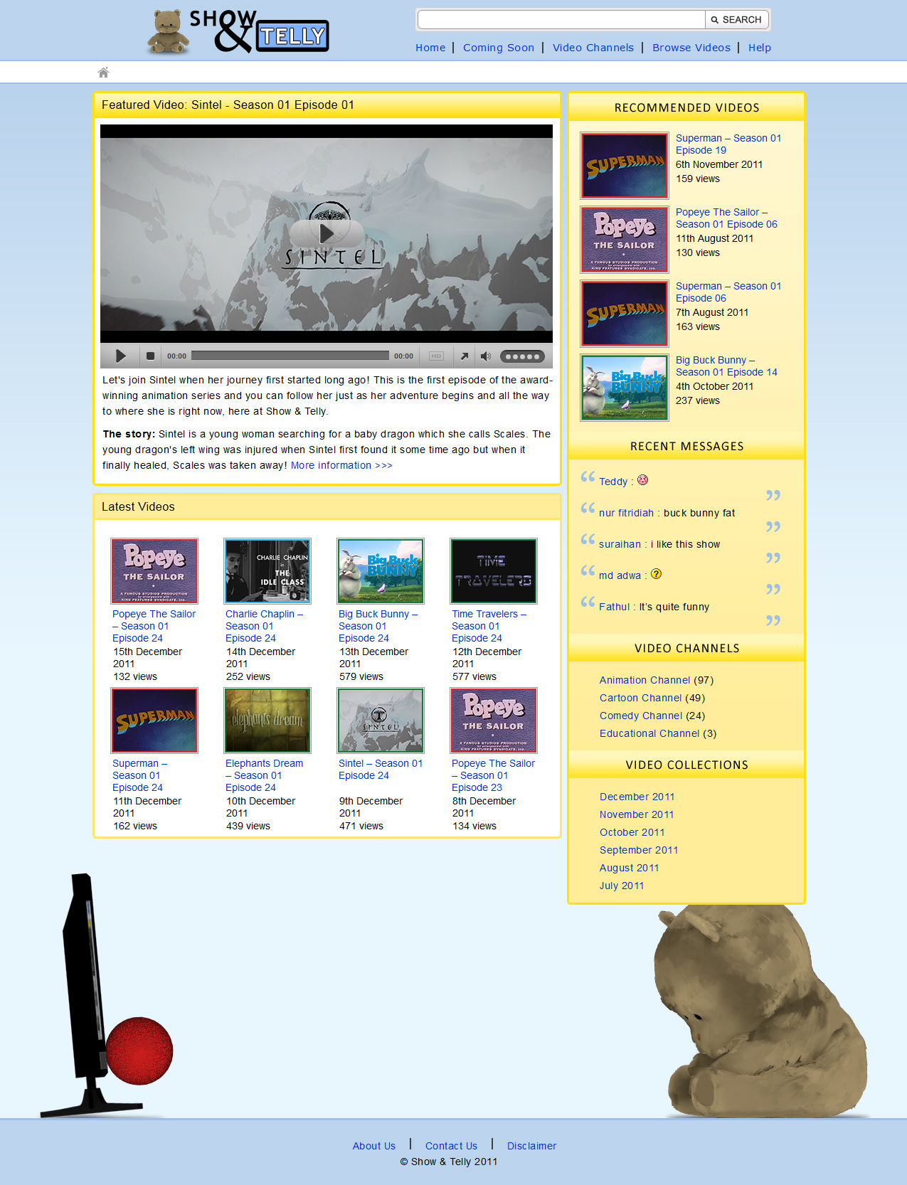 The website has an internal search engine, commenting system and features a teddy bear mascot. The mascot was created for a separate SIM University subject's project (which can be seen in the Videos page of this portfolio), and was re-utilised within the site. Pseudo-streaming was implemented to allow better implementation of the video player plugin.