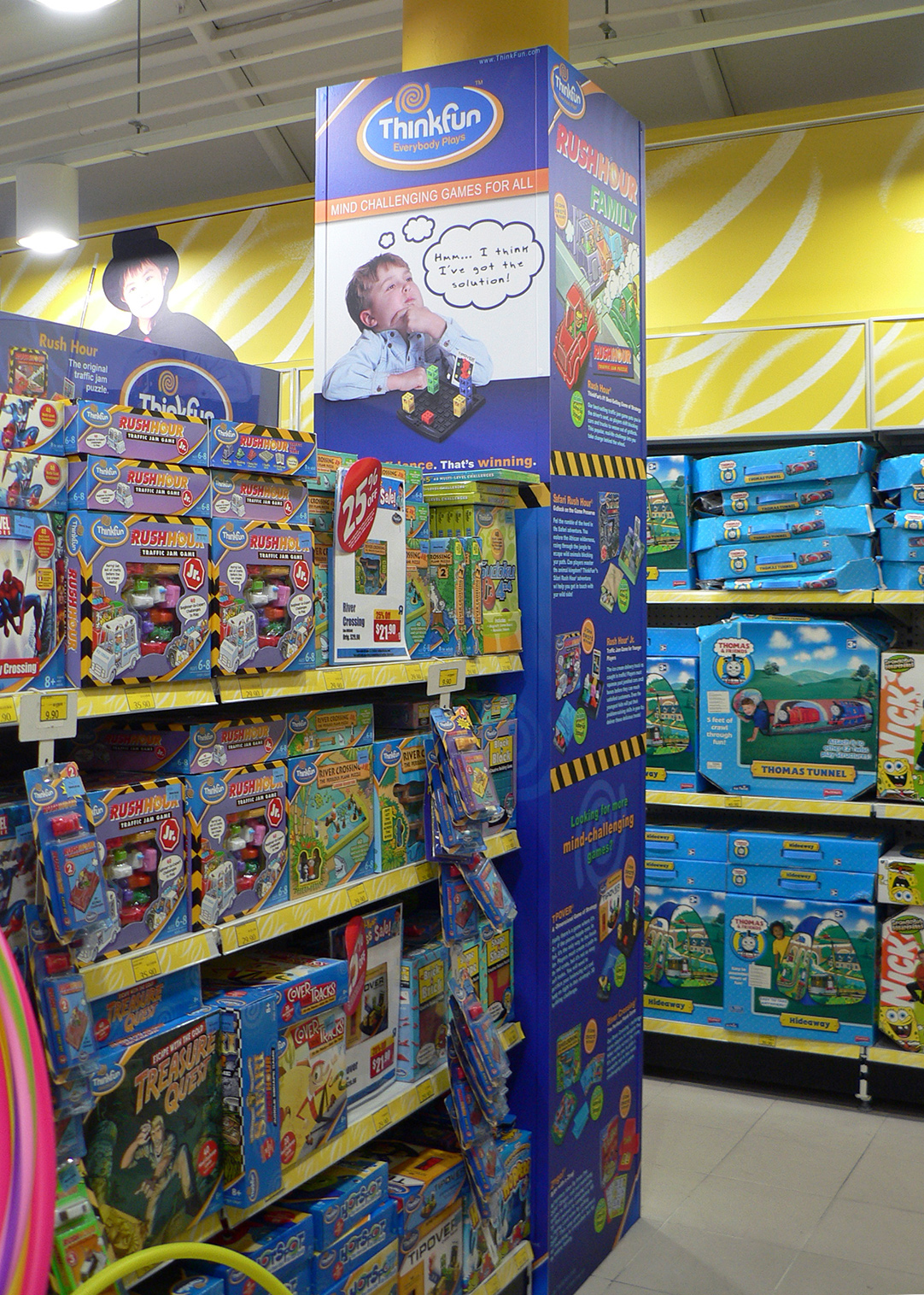 The brand message banner was designed to show some of the other Thinkfun products once the merchandise have been taken off the shelves. The inclusion of a stock photograph of an adorable young boy within the brand message banner proved successful in attracting customers to the merchandise, as informed to me by a representative of Lancashire Marketing.